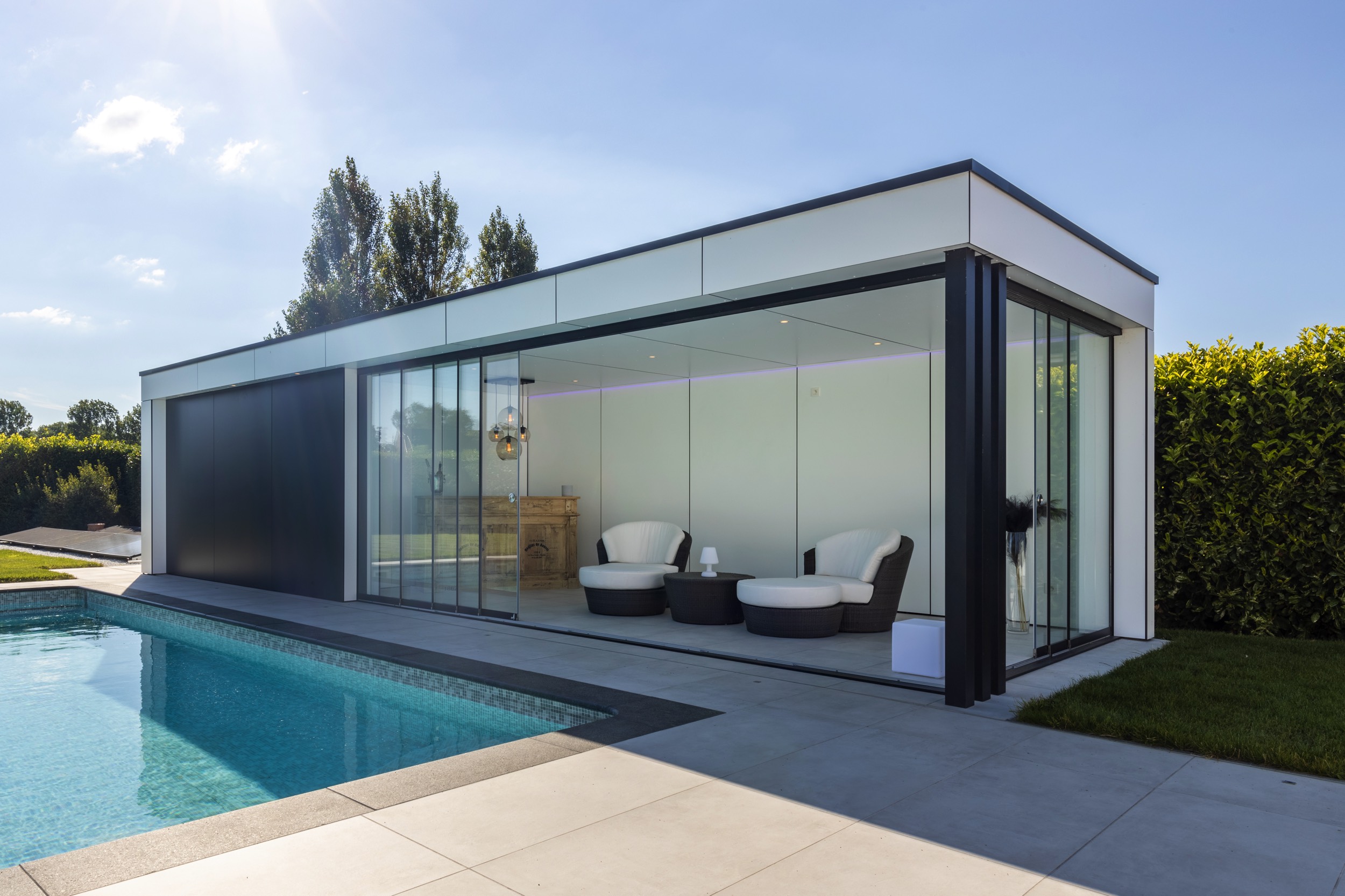 Réalisation de pool houses personnalisés : local technique, espace détente, cuisine d’été ou rangement, en cohérence avec votre espace piscine.